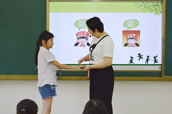 在接下來的講座中,胡老師通過課堂理論和實戰(zhàn)演練相結(jié)合的方式,幫助同學(xué)們了解潛在的可能會出現(xiàn)性侵的危機場景以及可能會對我們產(chǎn)生傷害的人群。在真的遇到危機事件時怎么辦呢?胡老師告訴孩子們首先不要驚慌,在人多的地方可以大聲的呼救,如果是在人煙稀少的地方首先要保證自己的安全,伺機而動。為了給孩子們加深印象,胡老師邀請孩子們來到講臺前進行角色扮演,將課堂所學(xué)應(yīng)用到模擬的情境當中。