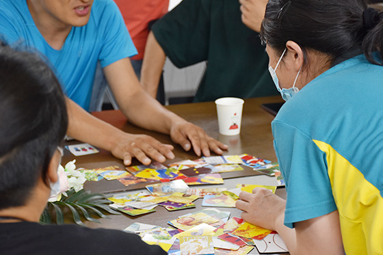 每個(gè)人帶著自己不同的成長印記坐在今天的活動(dòng)室里。談及壓力,不同的學(xué)員、手持不同的卡片,在回望自己的內(nèi)心時(shí),每個(gè)人都看到了不同的內(nèi)容;而王老師也尊重每位學(xué)員的不同,不評(píng)價(jià)、不談對(duì)錯(cuò),讓學(xué)員們?cè)谶@個(gè)溫暖、抱持的環(huán)境中自由任自己的情緒流淌,學(xué)員們也可以放下防御,讓最真實(shí)的自己以卡牌為媒介得以展現(xiàn)。學(xué)員們此時(shí)的狀態(tài)也發(fā)生了改變,剛進(jìn)入活動(dòng)室時(shí)煩躁不安,而此時(shí)都漸漸平靜了下來。