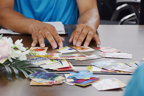 沙龍活動(dòng)的前半部分主要是圖卡的分享,在后半部分的活動(dòng)中,王老師讓大家結(jié)合字卡,來探索壓力的解決方向。神奇的事情發(fā)生了,那些迷惑的、迷茫、無助的、焦慮的情緒,在字卡的指引下似乎都有了方向。學(xué)員們心中模糊的被壓抑的情緒通過卡牌得以具化,改變的方向自然更加明晰。