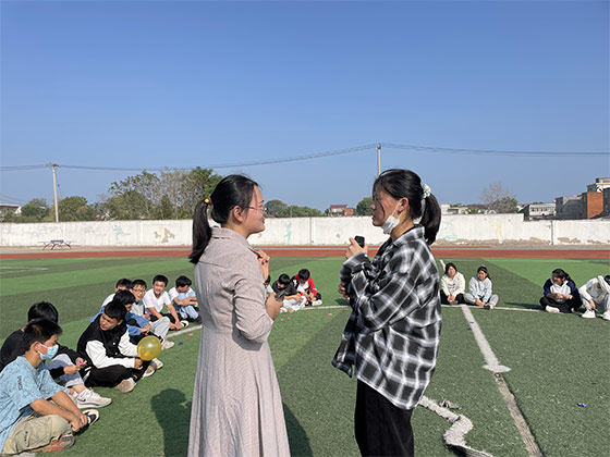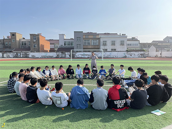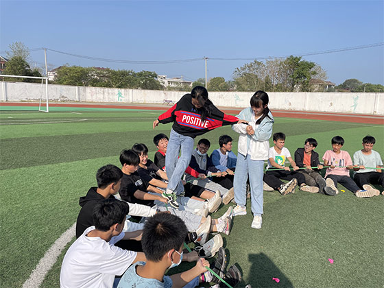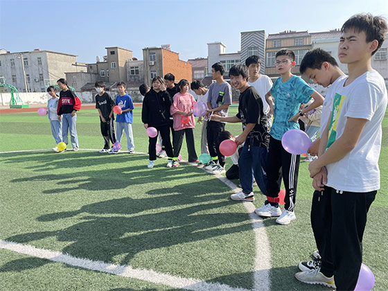 活動開始,王老師用“桃花朵朵開”這個(gè)游戲活躍氣氛,幫助同學(xué)們拉進(jìn)彼此的距離,投入到活動當(dāng)中來;在“星球大戰(zhàn)”的游戲中,同學(xué)們兩兩一組,在守衛(wèi)自己小組的氣球同時(shí),要設(shè)法踩破其他小組的氣球。守衛(wèi)與對抗,競爭與合作,這些看似對立的詞語在這場活動中和諧共生,讓孩子們緊緊地結(jié)合在了一起。在動力圈環(huán)節(jié)中,王老師讓同學(xué)們圍坐一圈,手抓一個(gè)大繩圈,通過向后仰的方式,將繩圈用力繃緊,然后邀請一位挑戰(zhàn)者在繩圈上行走。對于所有的參與者來說,這都是一個(gè)勇氣和信任的大挑戰(zhàn)。活動的最后,王老師讓同學(xué)們在彩色便簽紙上寫下對未來的期許和同伴的祝福,讓大家感恩一起走過的日子,一起向未來,去遇見更美的自己。